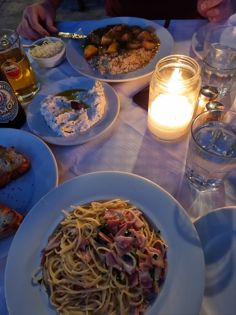 In Atena am gasit un restaurant in apropiere de centrul orasului, cu priveliste la Acropole, unde am mancat paste carbonara si o friptura din miel cu orez. Foarte buna mancarea, recomand sa va alegeti si un restaurant cu view, o sa vedeti ca experienta e mult mai intensa si mancarea are alt gust cu adevarat.