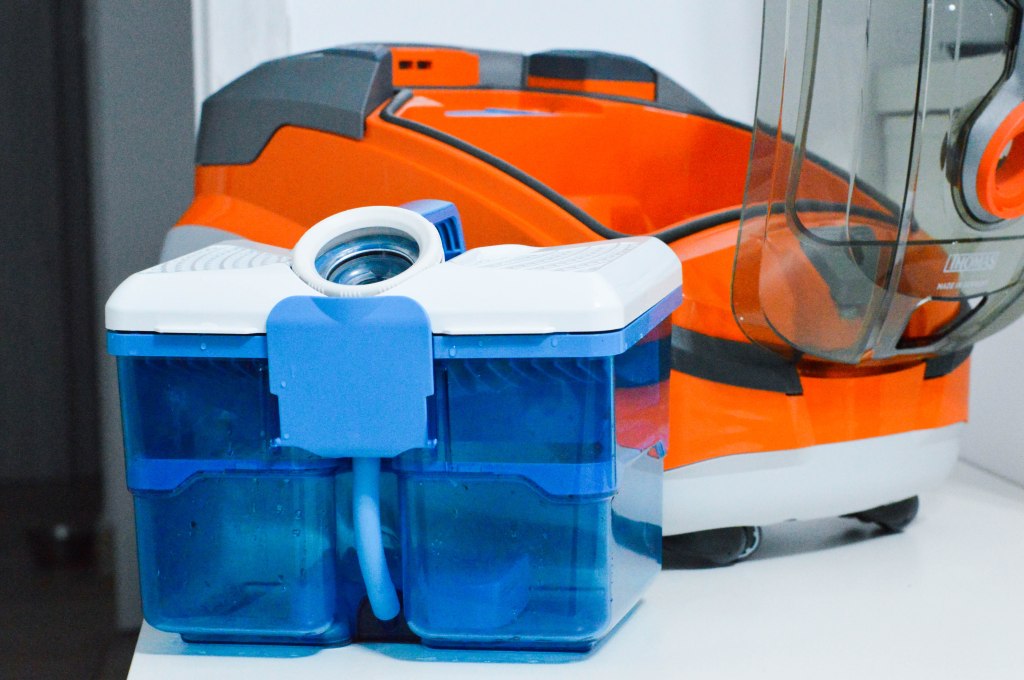 Metoda mea preferata este cea prin filtru de apa Aqua+. Recipientul se umple cu apa, circa 1l si este gata de actiune. Mizeria se colecteaza in acest recipient cu apa, astfel ca scapam si de praful din aspirator.